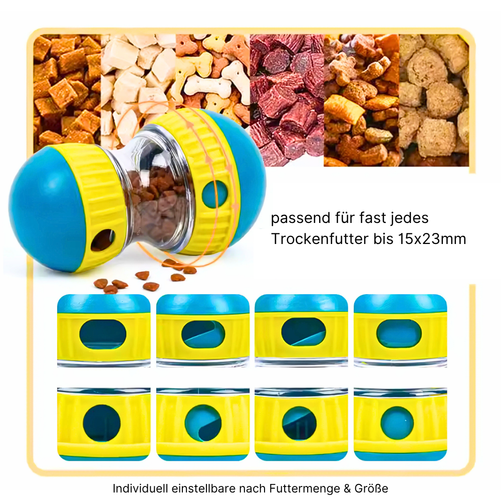 Mit den individuell einstellbaren Auslassöffnungen passt du das Spielzeug auf Futtergröße und Schwierigkeitsgrad an. Es ist aus BPA-freiem ABS gefertigt, robust und sorgt für gesunden Spielspass bei Hunden jeder Größe.
